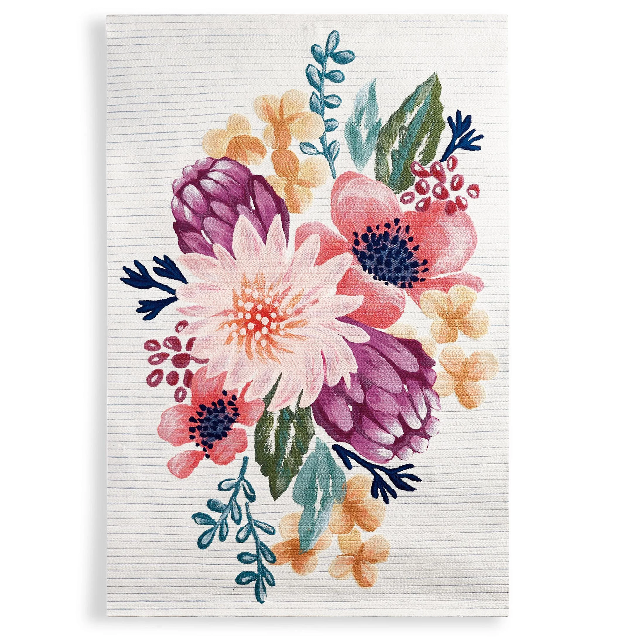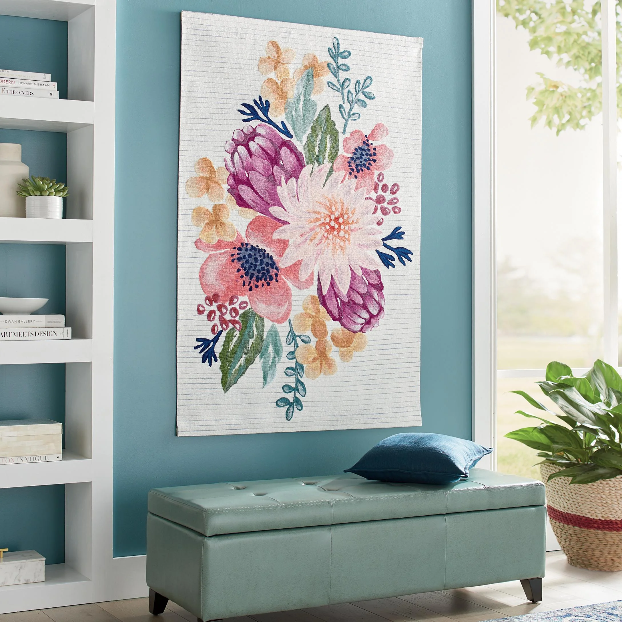 This unique piece is made using a special technique called Lamontage, a process created by Liora Manné. Polyester fibers are intricately cut, blended and layered by hand, then mechanically interlocked by needle-punching. This process is usually used on rugs, but we thought it would be an interesting take on wall art. I painted this springtime floral piece digitally. Image from grandinroad.com.